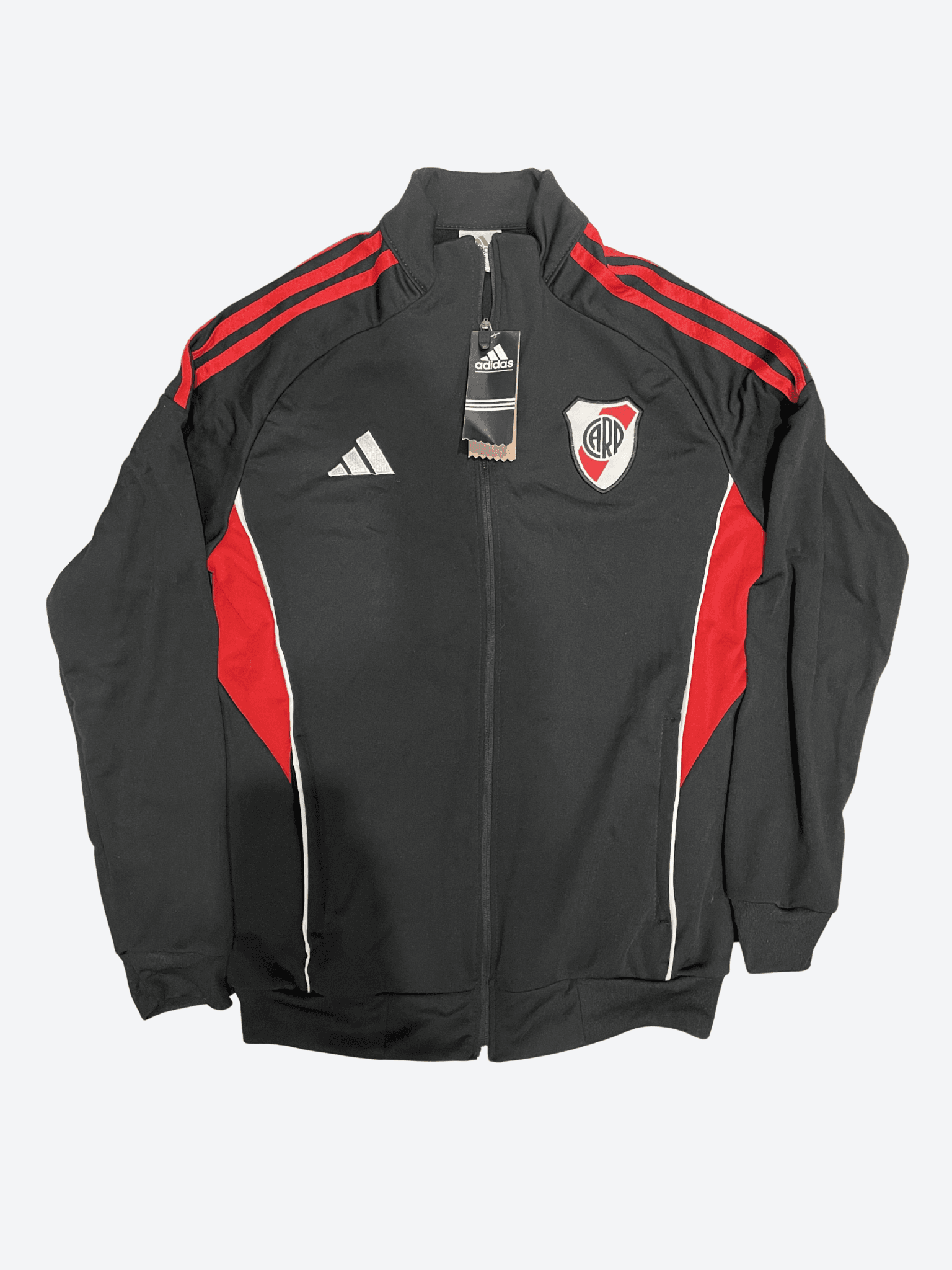 La campera oficial de presentación. Diseño sobrio en negro con las tres tiras rojas en los hombros. Ideal para el uso diario o para ir a la cancha.